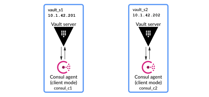 - $CLUSTER_ADDR: 요청 전달을 위해 클러스터의 다른 Vault 서버에 광고할 주소를 지정합니다. 이는 환경 변수 VAULT_CLUSTER_ADDR을 통해 제공될 수도 있습니다. 이것은 api_addr과 같은 전체 URL입니다. 이 시나리오에서는 각각 https://10.1.42.201:8201 및 https://10.1.42.202:8201이 됩니다.